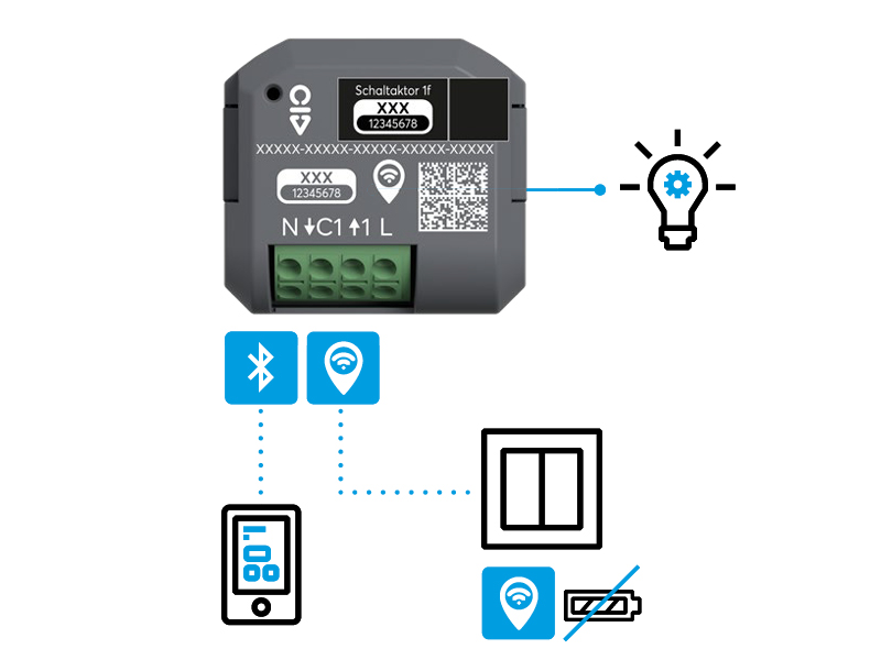 Zet de eerste stap in draadloze bediening met de slimme schakelaar, dimmer en actor voor elke willekeurige ruimte. De actor is in een handomdraai in een inbouw- of een centraaldoos in het plafond te klikken en aan te sluiten. Het centraaldoosdeksel CD/RVI van ABB is hier speciaal voor ontwikkeld. Ook is de schakelaar eenvoudig (achteraf) te monteren. Hij kan zowel in een bestaande inbouwdoos geplaatst worden als direct op de muur of zelfs op het hoofdeinde van het bed geplakt worden; gaten boren is dus niet meer nodig. Bewoners kunnen vervolgens de diverse functies eenvoudig met een smartphone of tablet via bluetooth aansturen.