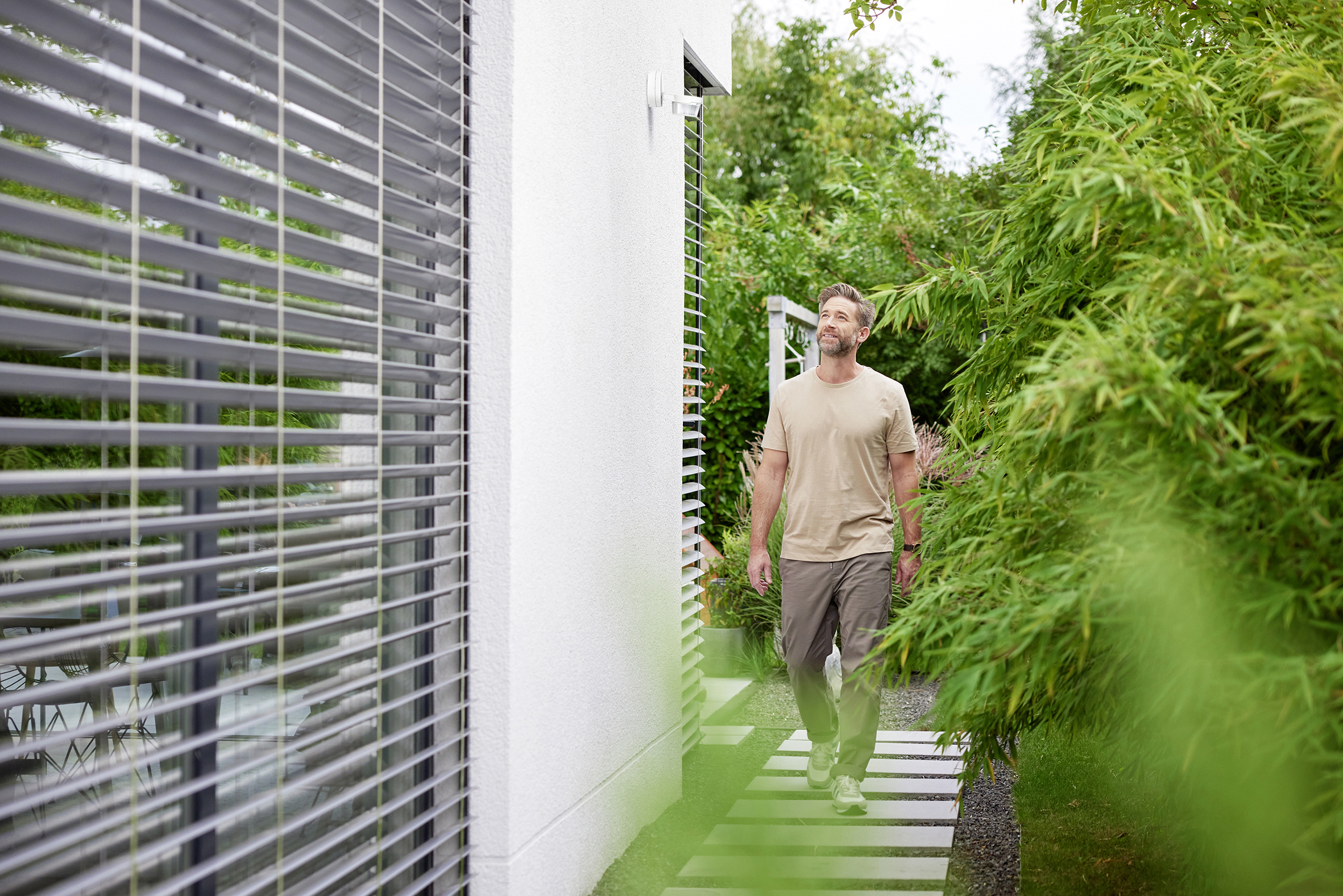 Met een detectiehoek van 280°, een bereik van 16 meter naar voren en 32 meter opzij, biedt de Busch-Wächter® PRO KNX een volledige dekking. Ideaal voor hoeken van gebouwen of grote geveloppervlakken. De vier afzonderlijke sensorzones (links, rechts, midden en kruipbeveiliging) kunnen gericht worden in- of uitgeschakeld, wat maximale flexibiliteit biedt bij het ontwerp en de installatie. Extra sensoren voor temperatuur en lichtsterkte – elk met drie instelbare drempelwaarden, vijf logische functies en de mogelijkheid om tien gebouwfuncties aan te sturen – maken het profiel compleet.