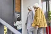 Twee oudere personen staan voor een huis met een deurcommunicatiesysteem