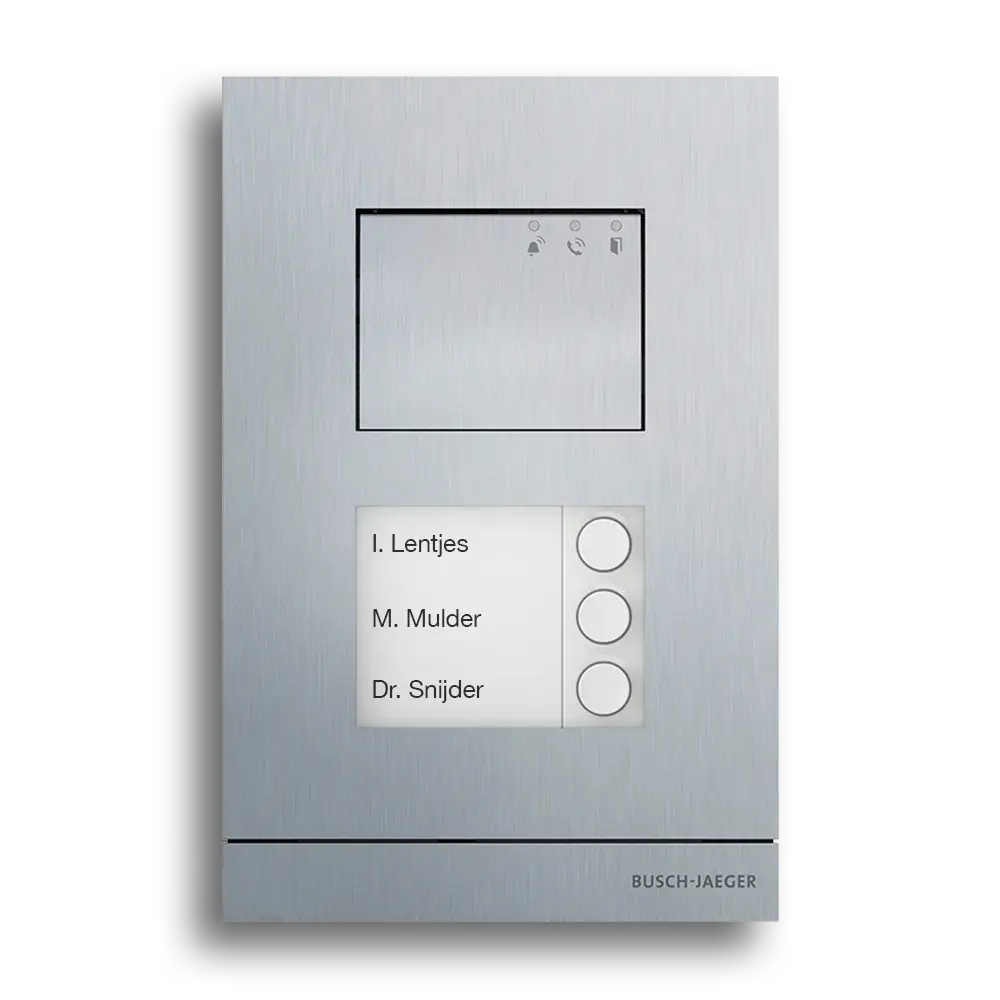 De audiobuitenpost is verkrijgbaar met één, twee of drie beldrukkermodules en is daarmee ideaal voor eengezinswoningen tot appartementencomplexen. We bieden de Busch-Welcome® audiobuitenpost met vier, zes, tien of vijftien beldrukkers.