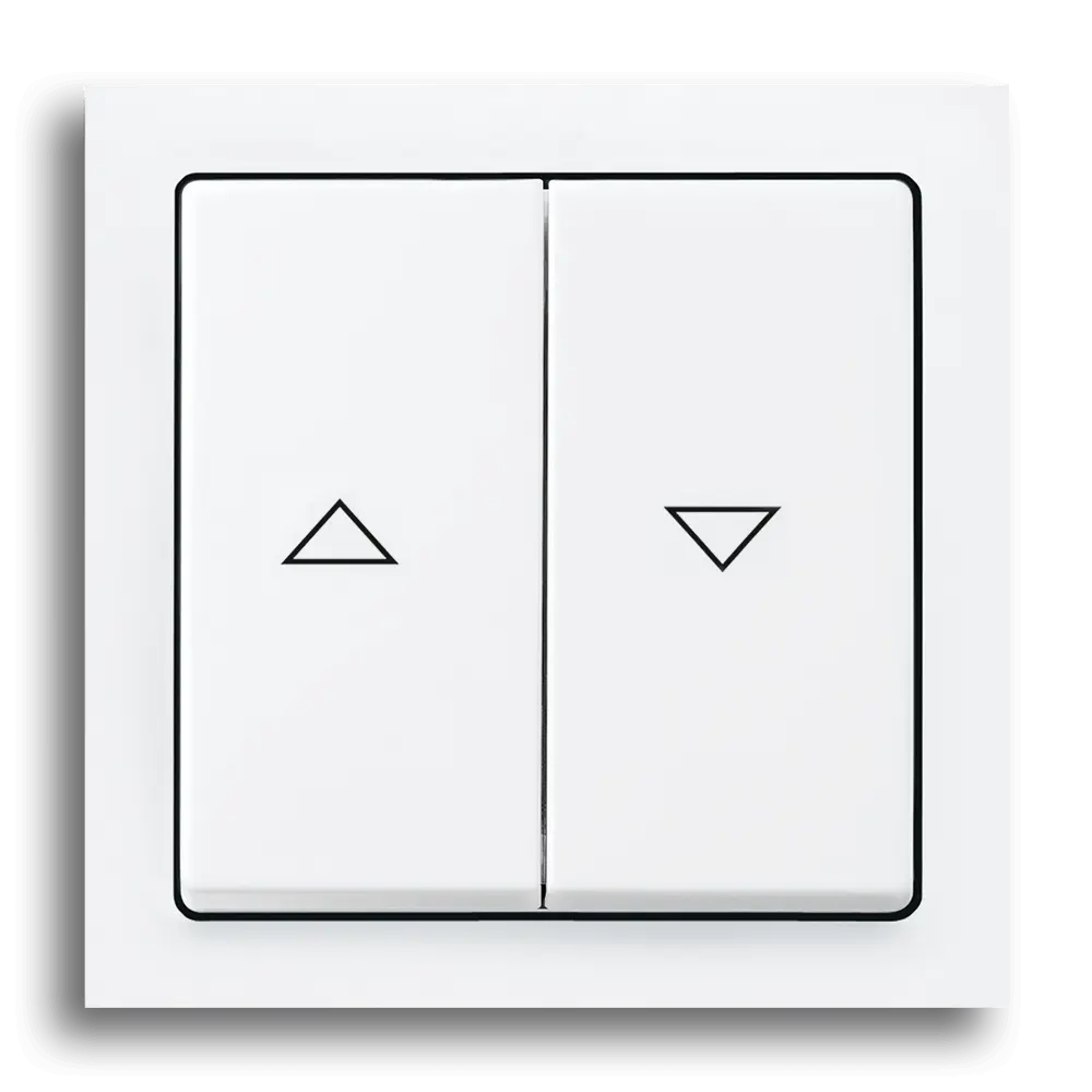 De jaloezieschakelaar met impulsdrukker maakt het mogelijk om je jaloezieën te bedienen met aparte schakelaars. Met de ene schakelaar kun je de jaloezieën omhoog bewegen en met de andere omlaag. De pijlen op de schakelaars geven de functie en looprichting van de jaloezieën aan.