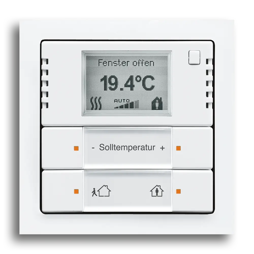 Met de KNX-ruimtetemperatuurregelaar kan de ruimtetemperatuur naar behoefte worden ingesteld, wat de mogelijkheid biedt om energie te besparen. De vuistregel is indrukwekkend: één graad minder bespaart ongeveer 6% energie. Dit biedt een groot potentieel wanneer men bijvoorbeeld reageert op de verschillende warmtebehoeften op verschillende tijdstippen van de dag. Zo is er 's nachts meestal minder warmte nodig, evenals bij afwezigheid. En er zijn ook verschillen van ruimte tot ruimte: in de slaapkamer moet het voor velen aangenaam koel zijn, terwijl een warm bad 's ochtends bijdraagt aan het woongemak. En ook voor commerciële gebouwen kan dit een aanzienlijke besparing opleveren.
