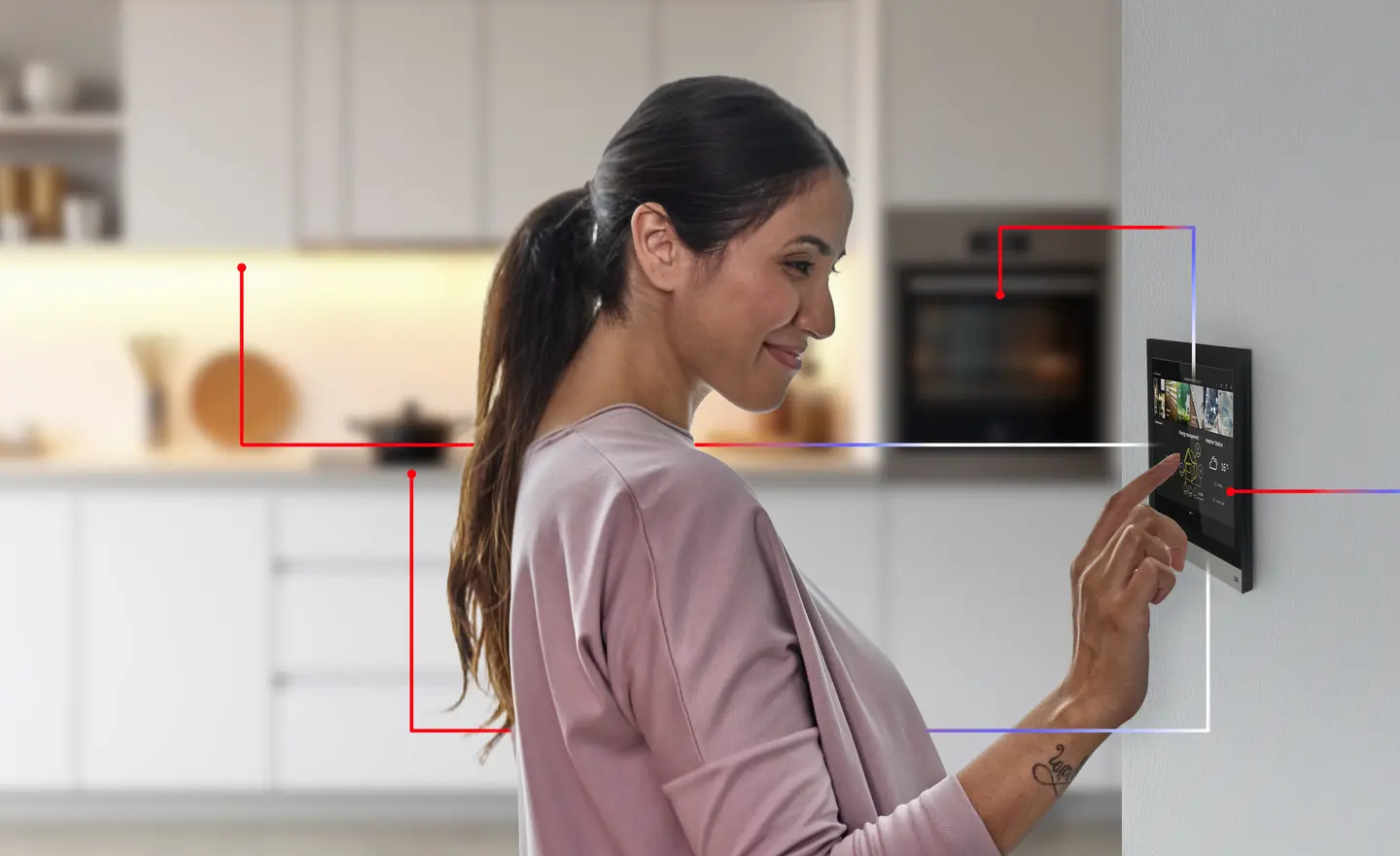 Met een Smart Home-paneel heb je één centraal punt in huis om je Busch-free@home®-systeem te bedienen. Dankzij het paneel kun je de hele woning centraal aansturen of alleen individuele ruimtes. Ook kun je hiermee alle verlichting uitschakelen zodra je de woning verlaat of juist je persoonlijke welkomstscène met één tik van je vinger activeren zodra je thuiskomt.